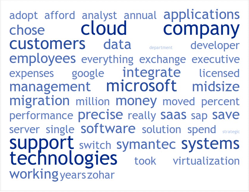 I denna artikel beskriver executive vice president Zohar Gilad på det amerikanska företaget Precise hur de lyckades att skära ned sin IT-budget med 70% på ett år genom att våga ta i bruk moderna teknologier och tjänster i det vi vanligtvis kallar för molnet.